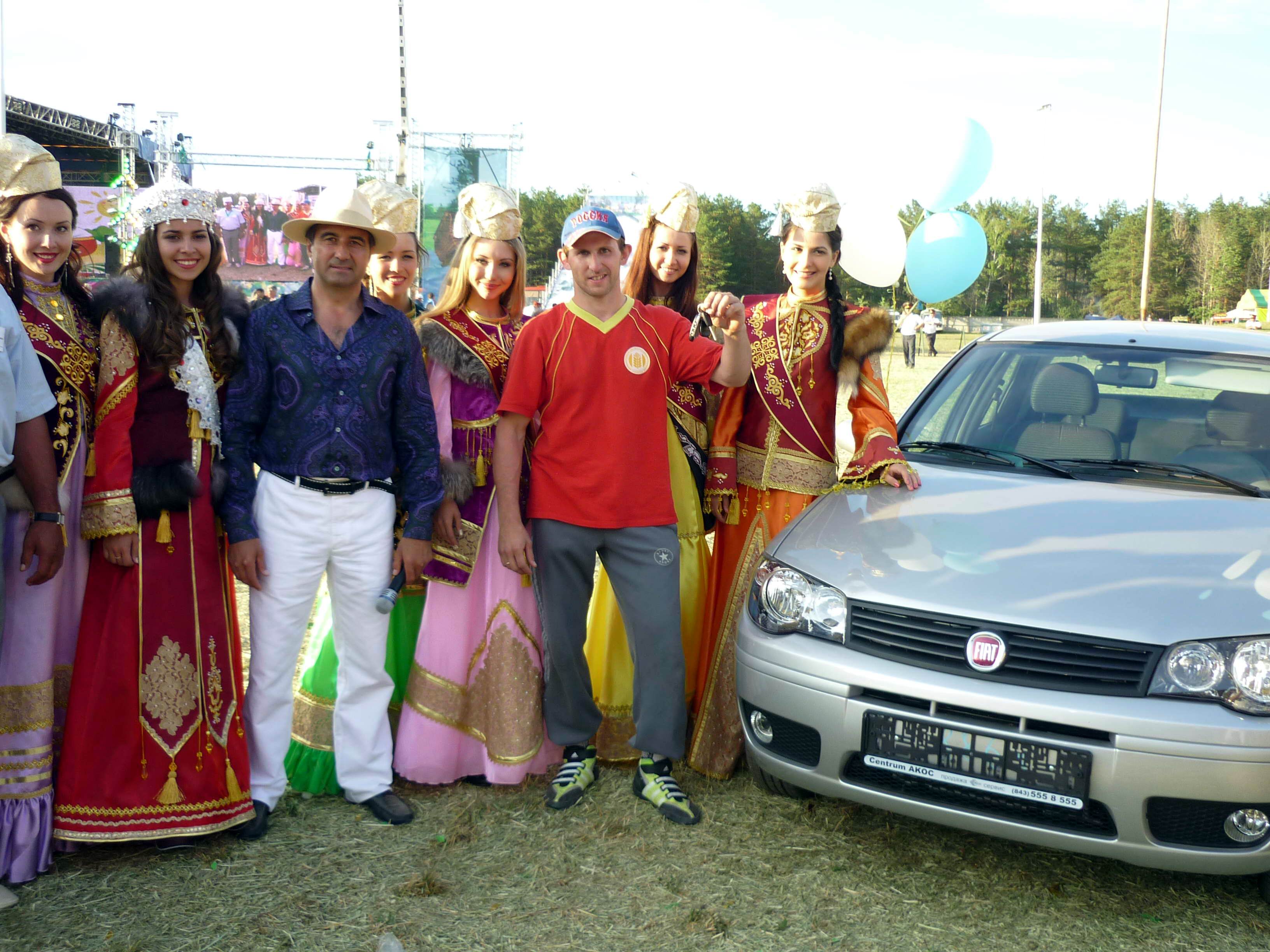 В схватве за звание абсолютного батыра Сабантуя сошлись 46-летний Ришат Шарипов и 26-летний Ренат Ахметшин. Верх взял опыт - Шарипов красивым броском одержал победу над более молодым соперником. Ришату водрузили на плечи 130-килограммового барана. Далее приступили к розыгрышу автомобиля "Фиат-Албеа". Пятерым победителям в своих весовых категориях было предложено вытянуть из тюбетейки в руках мэра города бумажки, на одной из которых было написано "автомобиль". Самым удачливым оказался Руслан Аюпов. Впервые в Набережных Челнах автомобиль выиграл борец из легкой весовой категории!