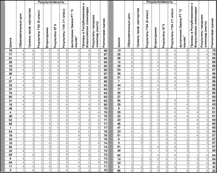 В первую десятку (соответственно с 6-го по 10-е место) вошли также школы №76, 36, 2, 57, 32, 37, 79, 60. Заметно улучшились показатели у 21-й школы.