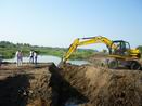 Сегодня, 2 августа, в Набережных Челнах произошло историческое событие, которое на техническом языке строителей называется "запуск реки под тело нового моста". До этого Мелекеска обтекала строящийся мост по временному руслу, которое выкопали на правобережье. Место строительства было отгорожено земляной дамбой. И вот настал момент, когда ковш зкскаватора начал вскрывать эту перемычку. Река сначала робким ручейком, а потом бурным потоком вернулась в прежнее русло. И, наконец, обласкала своими водами бетонные опоры нового моста. Тем из присутствующих, кто не видел, как строили Нижнекамскую ГЭС и перекрывали Каму, представилась возможность посмотреть, как это происходит в миниатюре.