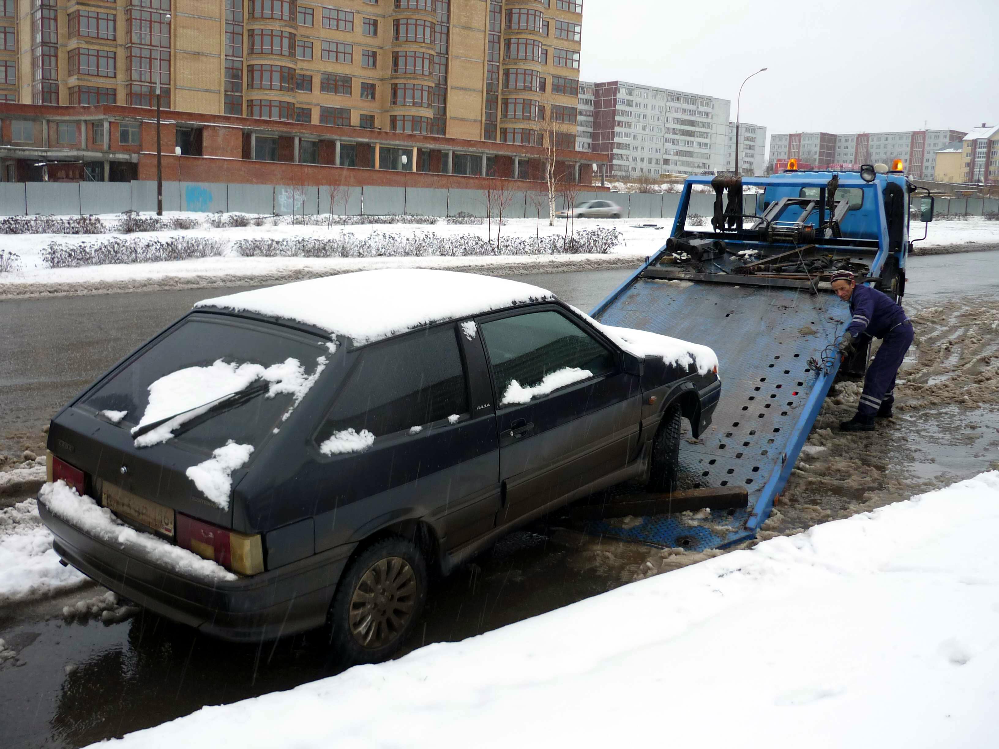 Достаточно проехать по улицам города, чтобы заметить, что каждая третья машина стоит там давно и явно мешает уборке снега. Остановочные карманы, несмотря на знаки, запрещающие стоянку, по-прежнему забиты припаркованными там машинами. Словом, на всех просто не хватит эвакуаторов. Поэтому рейд носил профилактический характер, чтобы напомнить водителям, что не стоит оставлять на долгое время автомобили на проспектах города. А автомобили эвакуировались выборочно. Так на проспекте Вахитова чуть выше остановки "Кереселидзе" со стороны 44 комплекса стояла целая вереница автомобилей, припорошенных снегом, и вокруг них уже даже образовался снежный бурт. Для показательной "порки" выбрали крайнего - "ВАЗ-2113", который стоял ближе к остановочному карману. Вызванный эвакуатор, которых, как уже было сказано, в городе не хватает, пришлось ждать минут сорок. Сама процедура погрузки автомобиля на эвакуатор заняла минут двадцать - несколько больше обычного. Сложность была в том, что с первого захода не удалось затащить машину, так как у нее колеса были слегка вывернуты и автомобиль все время уводило в сторону. Пришлось проделать несколько манипуляций. Наконец машина была погружена и благополучно отправилась на штрафстоянку. На остальные автомобили, экипажу просто не хватило бы времени, ведь еще нужно и дорожное движение контролировать.