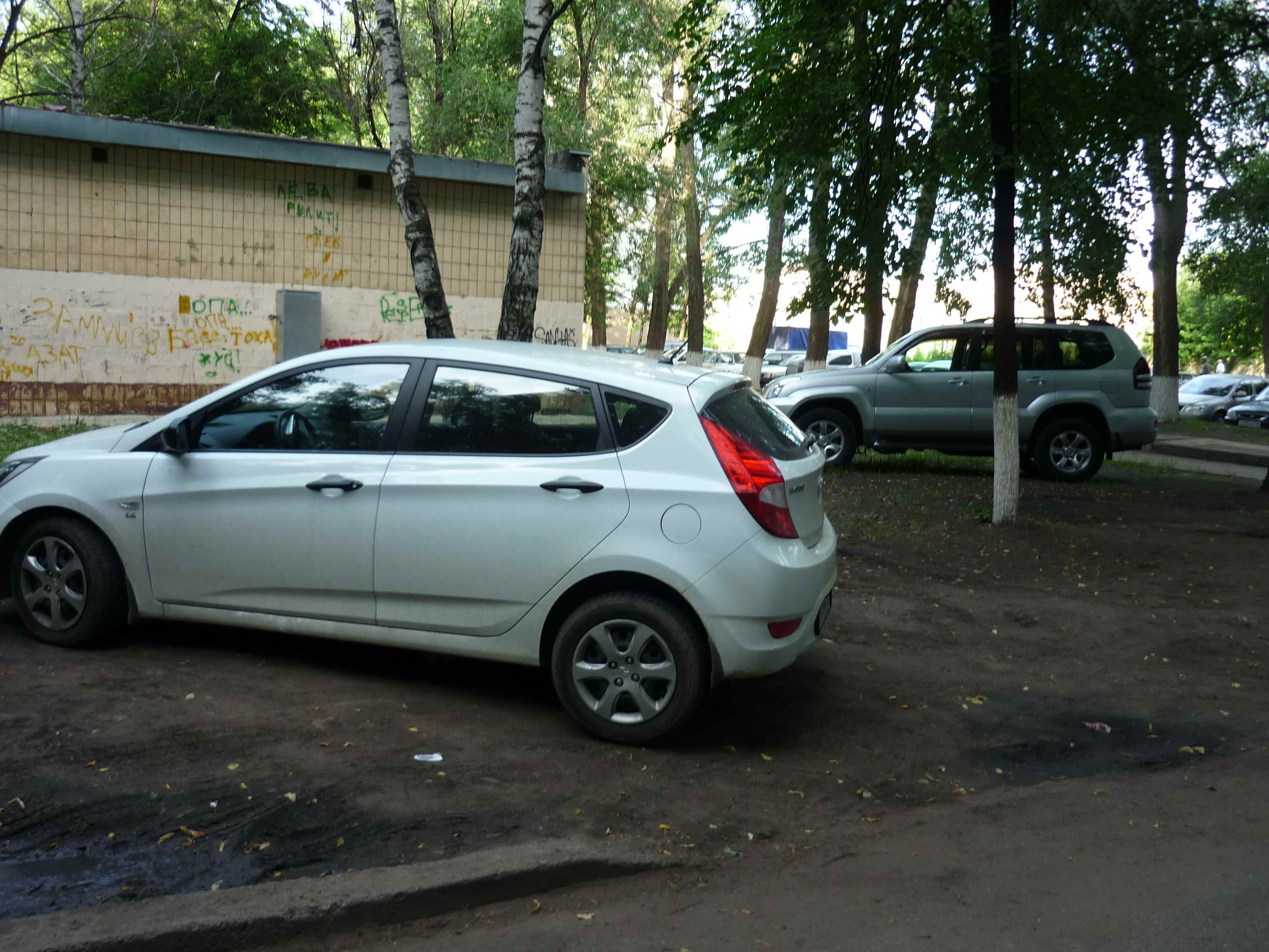 Пока наш участковый занимался "фотоэтюдами", один из водителей на белом "Хундай-Солярисе" на глазах у полицейских припарковался еще более наглым образом - в самую глубь зеленой зоны. И, судя по наезженной колее, это уже стало его постоянным местом парковки.
