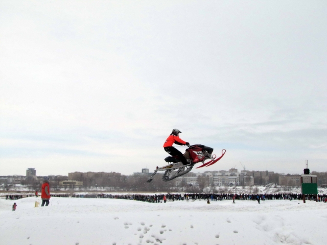 Соревнования проходили на трассе для мотокросса в районе старого автовокзала в поселке ЗЯБ. Поскольку погода выдалась теплой, то зрителей собралось не менее, чем на мотоциклетные гонки. Да и зрелище было не менее эффектное - снегоходы, поднимая облако снежной пыли, вмывали вверх на тех же трамплинах.