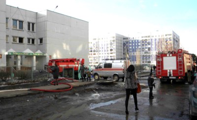 Сегодня около 16.00 произошел пожар в лицее N54 (38 комплекс). Во время урока физкультуры задымили деревянные полы спортзала. Всех учащихся сразу вывели на улицу. Никто не пострадал. Сейчас огнеборцы устанавливают причину возгорания. По одной из версий, произошло короткое замыкание, но не исключается и поджог.