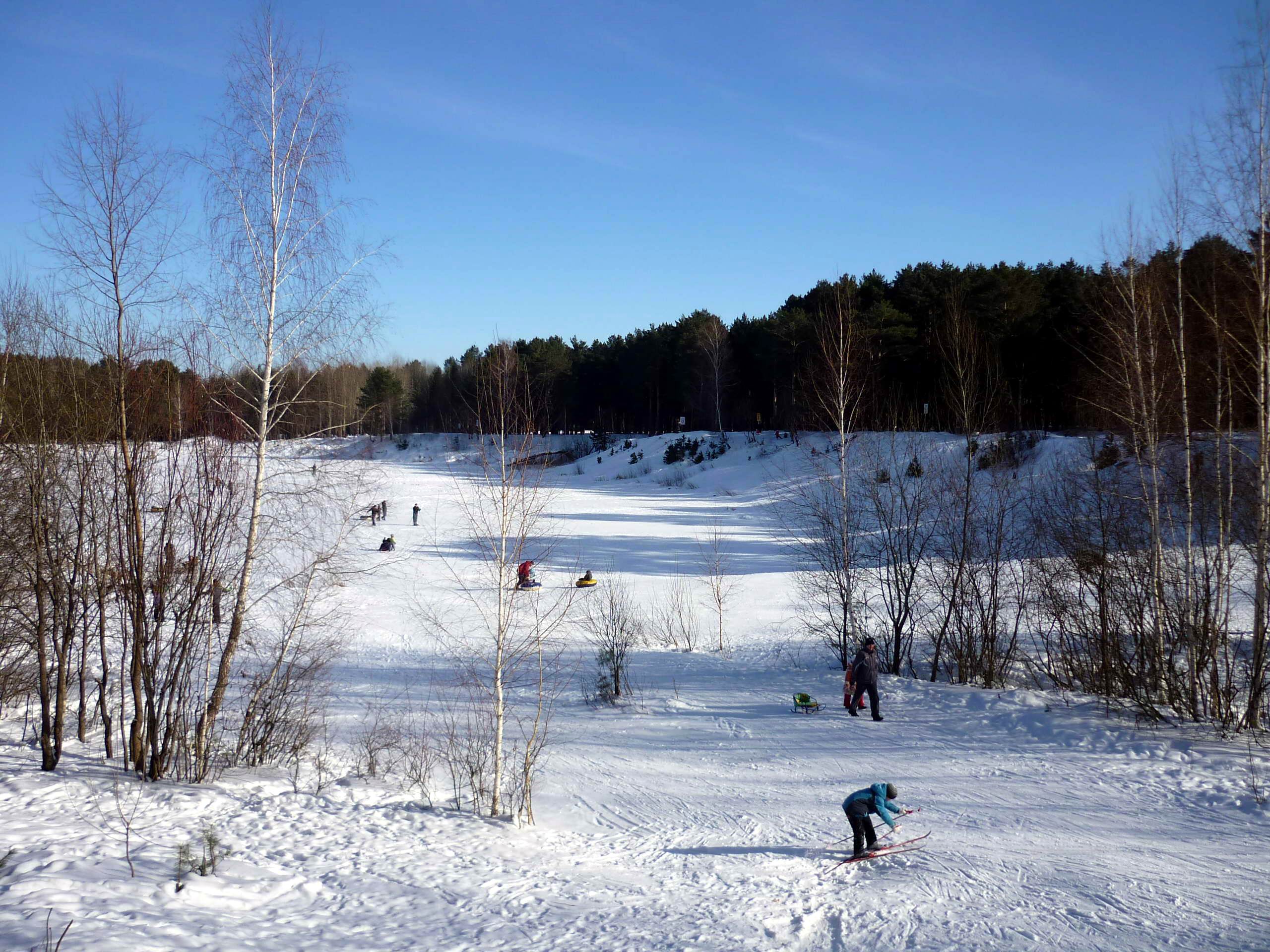 В парке "Прибрежный" многолюдно. Все больше жителей Нового города предпочитает проводить выходные и праздничные дни в парке "Прибрежный": на лыжах, на санках, на велосипедах, катаются на тюбинге... Много пенсионеров прогуливается с лыжными палками - очевидно, осваивают финскую ходьбу. Жаль, не удалось догнать лошадь, запряженную в сани, чтобы посмотреть, кто умчался по лесной трассе.