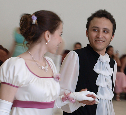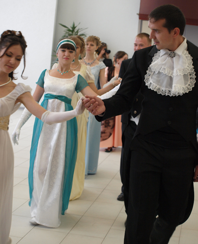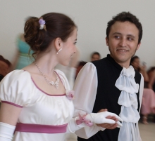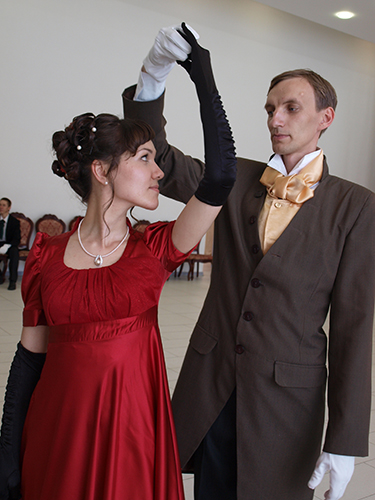 Сегодня в зале торжеств прошел Пушкинский бал. Посвященный дню рождения поэта, бал собрал гостей пушкинской эпохи и героев его произведений. Гостей встречала Александра Воронцова-Дашкова, она же – Елена Склярова, руководитель городского клуба старинных танцев. К графине пожаловали Мария и Сергей Волконские, Петр Вяземский, Петр Чаадаев, Анна Керн, Ольга и Татьяна Ларины, Петр Гринев и Маша Миронова, Кот Ученый, корабельщики и Александр Сергеевич. Кудрявый, в бакенбардах, похожий на самого себя.