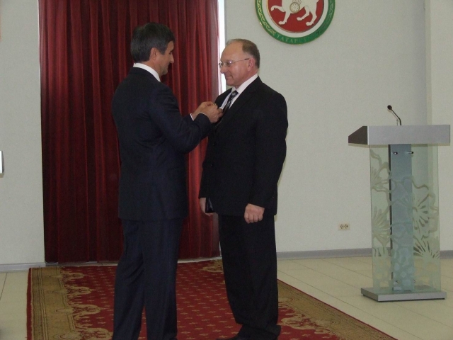 Сегодня во Дворце торжеств Василь Шайхразиев вручил государственные награды пятерым челнинцам. Звание «Заслуженный врач Республики Татарстан» присвоено заместителю главврача врачебно-физкультурного диспансера Геннадию Герасимовичу, главному врачу 4-й детской поликлиники Ляле Серазитдиновой и заведующему  отделением анестезиологии и реанимации горбольницы №2 Наилю Хазиеву. Заслуженным машиностроителем Татарстана сегодня стал гендиректор ООО «Тиссан» Гаяз Исламов. Благодарностью президента Татарстана поощрен ведущий техлолог КБК Леонид Теплоухов.