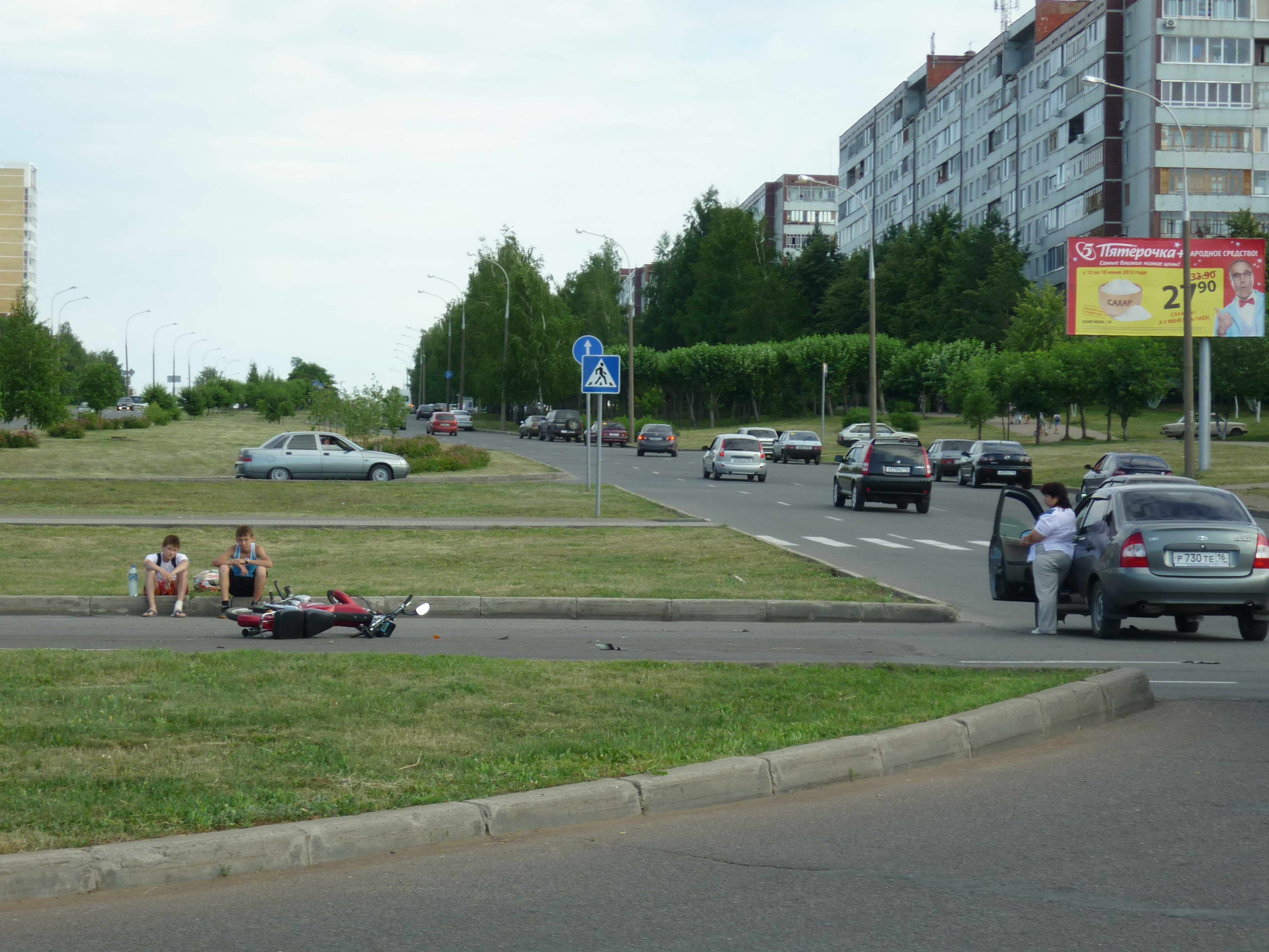В 16 часов на пересечении проспектов Чулман и Вахитова 21-летняя девушка за рулем "Лады-Калины" сбила двух 16-летних парней, ехавших на скутере. По правилам дорожного движения девушка должна была пропустить скутеристов, но не заметила их. Она рассказала нашему корреспонденту, что перед ней проскочила "десятка" и она подумала, что дорога свободна. А тут "как с неба" свалились скутеристы. Пострадавшие отделались царапинами на руках, плечах и коленях.