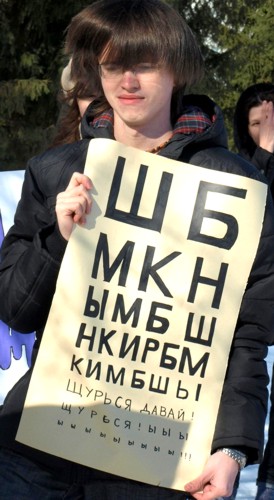 Открыли сезон мобберы: в пятницу 1 апреля они провели монстрацию. Шествие со смешными плакатами вроде «Меня здесь нет», «Бабе цветы, детям — мороженое», от 105 универсама по бульвару Энтузиастов до мэрии и оттуда до парка Победы привлекло внимание милиции. Сотрудники органов потребовали впредь согласовывать демонстрации, даже шуточные, чтобы не нарушать закон. Поинтересовались, кто организатор. В интернетную версию не поверили, уверенно заявив, что всегда есть тот, кто первый подал идею. Фотографу, снимающему милиционеров, предложили пройти в отделение. Но обошлось без невеселых последствий. 1 апреля все-таки.
