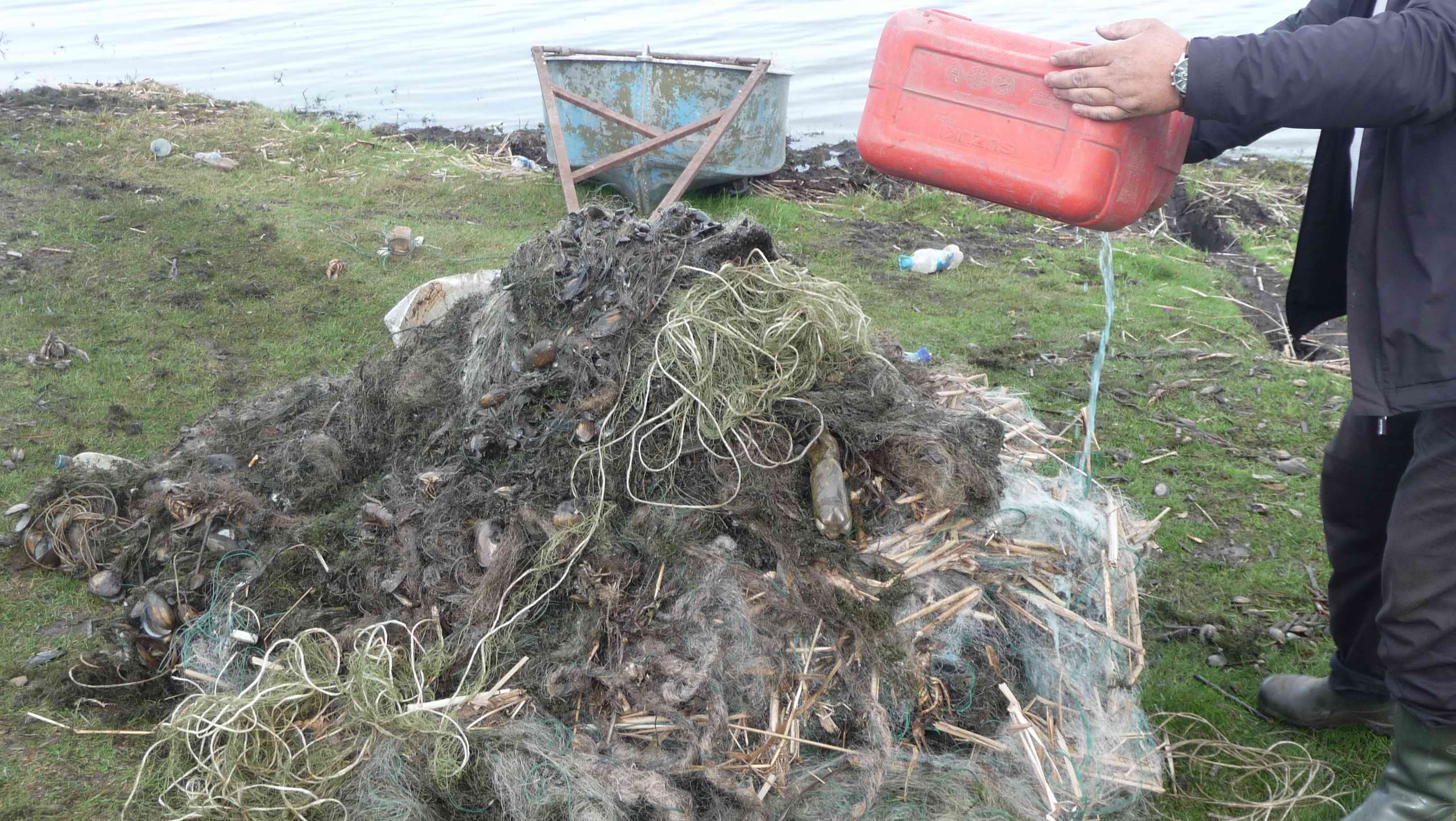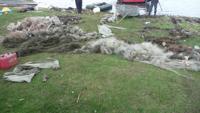 1 мая бригада рыболовов-любителей на четырех лодках во главе с главным рыбинспектором региона Валерием Нечаевым и региональным представителем "Союза рыболовов" Вячеславом Дурягиным прочесали разливы реки Ик в районе деревни Дусай-Кичу, известной среди рыболовов как Третья деревня. Было вытащено и уничтожено около трех километров(!) браконьерских сетей! И самое ужасное, что среди них очень много старых, брошенных сетей с тухлой рыбой. Все сети складывали в мешки из-под сахара - набралось 12 мешков. Сваленные в кучу браконьерские снасти сожгли на берегу.