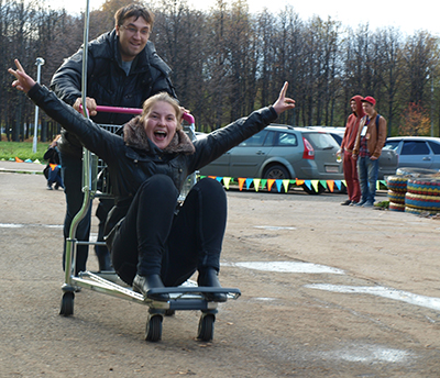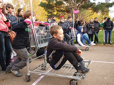 Сегодня в парке Гренада в рамках фестиваля уличных культур MaxiArt - Урмания прошли гонки на магазинных тележках. В забегах на 50 метров участвовали команды из двух человек: водитель и «груз». Гонки показали, что важны не только скорость, но и ловкость: несколько команд не дошли до финиша, так как не справились с разворотом, попали колесом в ямы или их занесло на обочине в грязь.