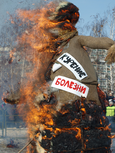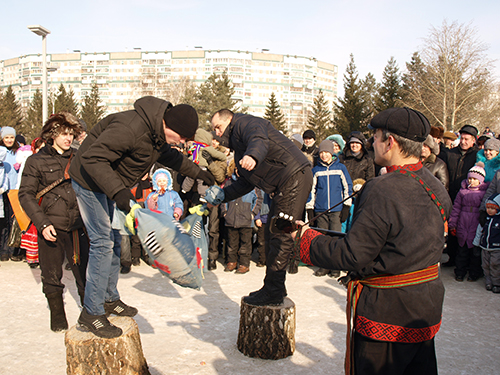 В воскресенье город праздновал Масленицу. Самые широкие гулянья развернулись на площади перед мэрией. Развлечения нашлись и взрослым, и детям: метание веников, перетягивание каната, городки, катание на лошадях и разные угощения. Особенно много желающих побиться за призы собрала игровая площадка центра воинского искусства «Кречет». Организаторы в косоворотках задорно вовлекали людей в соревнования и весело играли на балалайках во время «схваток» на мешках. Чувствовалось, что народ сильно соскучился по праздникам: площадь была полной, как на Новый год. Люди охотно покупали шарики, вертушки детям, с удовольствием устраивались за столами компаниями, участвовали в конкурсах. Ближе к часу дня центром притяжения стал пятачок с чучелом зимы. Люди окружили его плотным кольцом, намереваясь увидеть процесс сжигания во всех подробностях. «Курение никак не сгорит», - комментировали многие то, как огонь уничтожает таблички с грехами. Досмотрев, как исчезает соломенное «тело» чучела, люди удовлетворенно стали расходиться.