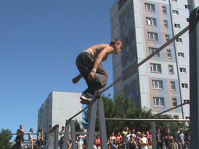 Открыл турнир Василь Шайхразиев, он выполнил ряд силовых упражнений на турнике. Соревнования прошли по следующим дисциплинам - гимбар (комбинация из силовых упражнений на перекладине), трикинг (сочетание движений из боевых искусств, гимнастики, брейк-данса и других спортивных дисциплин для создания зрелищной смеси из вращений в разных плоскостях), паркур (движение и преодоление препятствий различного характера), и гвоздь программы - турникмен (выполнение гимнастических элементов на перекладине). Турникмен – это уличный спортсмен, исполняющий разной сложности силовые упражнения дворовой гимнастики и акробатики на обычном турнике. Неподалеку, ребята из команды «Челнинские бульдоги» играли в американский футбол. Помимо основных соревнований, организаторы проводили различные конкурсы, в которых мог принять участие любой желающий. Так один из участников прошел около 100 метров на руках.