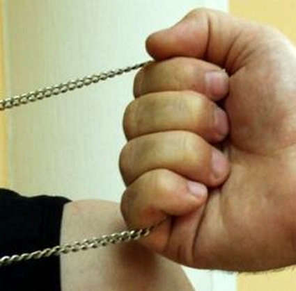 Ночью в подъезде одного из домов 8-го комплекса поселка ГЭС распивала спиртные напитки компания молодых людей. Когда вдруг закончились сигареты, один из них не придумал ничего лучшего, чем "настрелять" их , пройдясь по квартирам жителей подъезда. В одной из них дверь нетрезвому курильщику открыл 40-летний мужчина с золотой цепочкой на шее. Он отказал парню в просьбе, объяснив что сигарет нет вовсе. Тогда молодой человек бросился на мужчину, пытаясь сорвать ювелирное украшение. В завязавшейся потасовке ему удалось оборвать только часть цепочки, с которой он бросился наутёк.