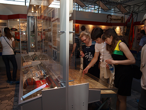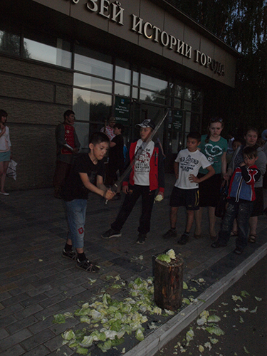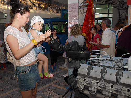 18 мая челнинский музей истории города был больше похож на парк развлечений. Учреждение присоединилось к международной акции «Ночь музеев» и приготовило для гостей программу. Вечером на площади устроили концерт и мастер-классы прямо на улице. Как магнитом притягивали и детей, и взрослых доспехи участников клуба «Польско-литовское копье». Дети щупали кольчугу, интересовались, кто из трех воинов – Илья. Богатыри устраивали показательную расправу над капустой: кидали кочан и разрубали его мечом. Фокус попроще повторяли дети: лупили по остаткам капусты, сложенным на чурбане. Весело, шумно и многолюдно было и в залах музея. Народ с интересом рассматривал экспонаты (неужели впервые?), фотографировался рядом с медведем, в кабине КАМАЗа, у красных знамен и макета города. Дети застывали в изумлении перед экспонатами - «подкидышами»: сотрудники музея показали, что у них все в порядке с чувством юмора и дополнили композиции сказочными элементами. На лопату у печи посадили колобка, в чугунок отправили топор, поставили старинные деревянные ведра со щукой, а рядом с курицей появилось золотое яичко. Интерес к этим чудесам был так велик, что руки сами собой тянулись к предметам, а трогать можно не все. А где малышня, наконец, могла пощупать, покрутить и повертеть, так это в камазовском зале. Самые маленькие просто «залипали» у двигателя грузовика, а потом забирались в кабину, крутили «баранку». Вот это аттракцион!
