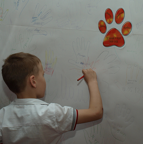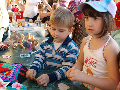 Первые развлечения уже на входе: раскрашивание глиняных игрушек.