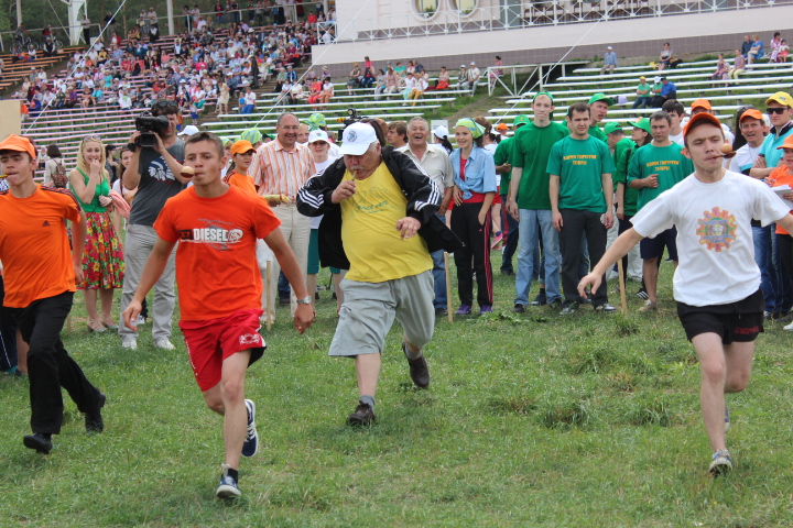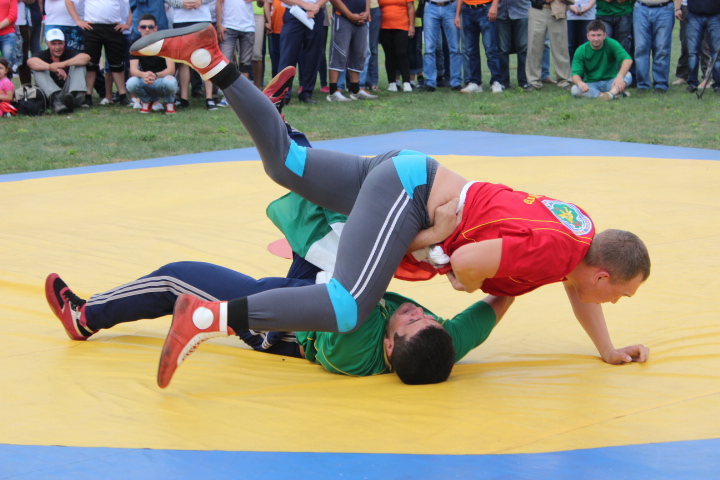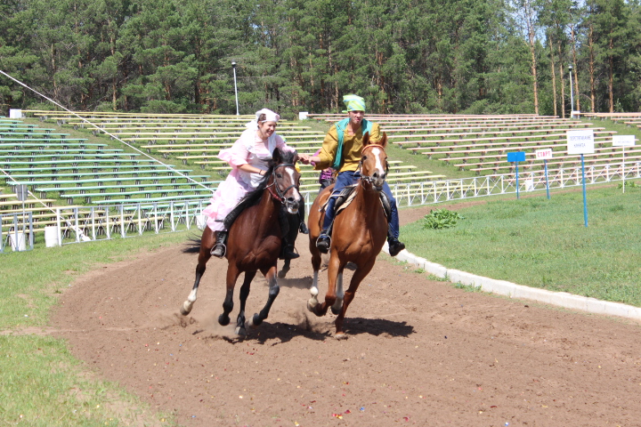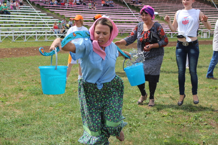 Конкурсам и состязаниям предшествовало костюмированное представление, в котором актеры пытались передать подзабытые традиции праздника. Концертные номера чередовались со спортивными соревнованиями. Все желающие могли поучаствовать в народных забавах: бег с коромыслом, разбивание горшка, поиск монеты в катыке, бег в мешках, поднятие гири и многое другое. Попробовали себя артисты и в роли борцов куреш. Актер из Альметьевска Раушан Мухаметзянов даже получил в схватке небольшое повреждение: «Знал, на что иду. Травму не боялся получить. В конце концов, у нас начинается отпуск, так что ничего страшного».