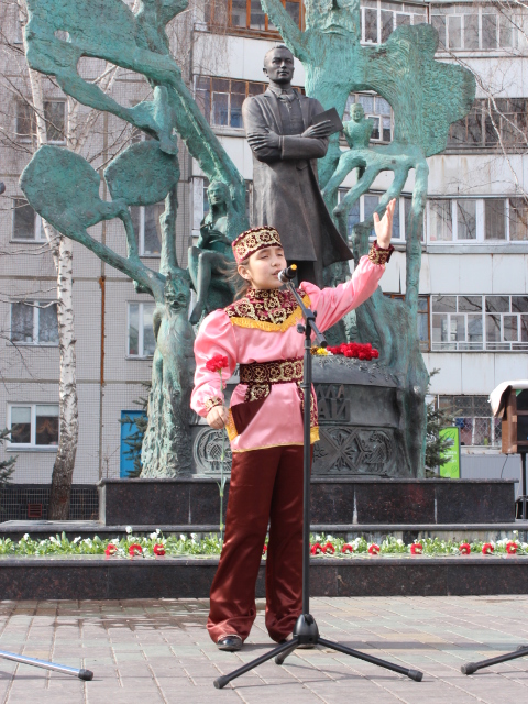 Сегодня в Набережных Челнах прошел праздник татарской поэзии и литературы, посвященный 128-летию со дня рождения Габдуллы Тукая. Хотя родился поэт 26 апреля, в нашем городе решили заранее отметить знаменательную дату. Почитатели таланта поэта возложили цветы к его памятнику. В сквере Тукая собралось около сотни челнинцев. В основном, учащиеся школ и детских садов. Впрочем, были и молодые люди, которые пришли, по своим словам, по собственному желанию. Правда, навскидку ребята вспомнили из творчества Тукая только «Шурале» и стихотворение «Туган тел», которое учат едва ли не все школьники Татарстана, начиная с первого класса.