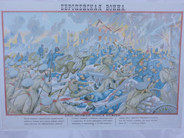 Часть работ иллюстрируют бои Первой мировой войны. К картинкам делались пояснительные записки, часто рифмованные, в которых кратко описывалось сражение.