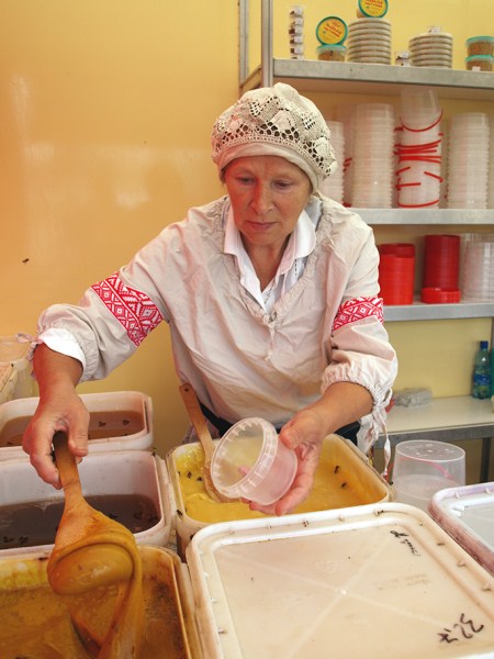 «Это жизнь», - философски заметила куратор фестиваля монахиня Матрона и пообещала, что со вторника выступления театра, экскурсии по экспозиции «Белорусская хатка» и мастер-классы по лозоплетению для детей будут идти в рабочем режиме. Товары же можно было приобрести уже сегодня: мед разных видов от 400 рублей за килограмм, очень красивую керамику, одежду, иконы, книги, косметическую продукцию. При монастыре несколько мастерских, в которых все это изготавливается, также монастырь арендует помещения на фабрике. Продукцию под брендом монастыря выпускает более 2 тысяч человек. Не только монахини, но и трудники – миряне, работающие в монастыре.