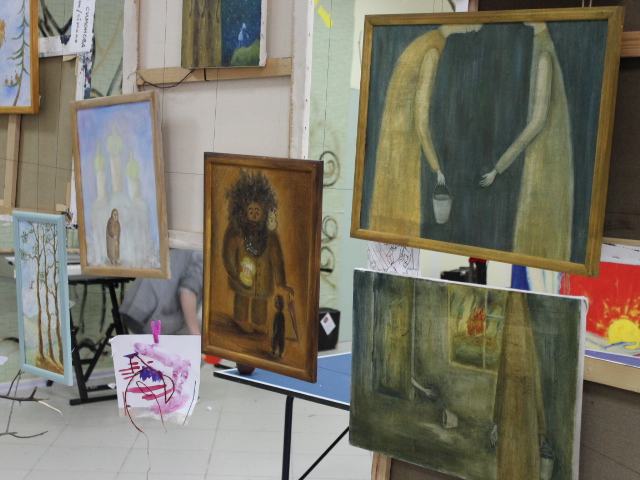 Стены зала украшали картины и фотографии местных и приезжих мастеров. Выставка была очень эклектична - поп-арт, аниме, сюрреализм. Впрочем, вся проходило под девизом «сделаем вместе». Юные хипстеры, многие из которых еще не закончили школу, рисовали вместе с опытными художниками.