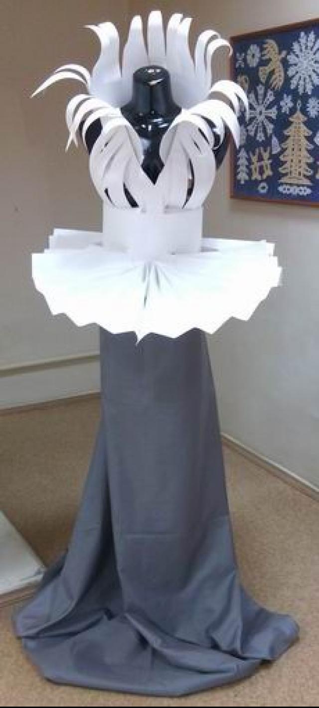 Так праздничные корсеты, выполненные студентами колледжа КИИД даже при близком рассмотрении выглядят как изделия из парчи, атласа и шелка. Понять что это картон или гофрированная бумага, можно только на ощупь. Именно эта коллекция корсетов и была признана лучшей работой арт-проекта. Жюри отметило многообразие использованных техник и фактурных материалов. Второе место заняли студенты НИСПТР с новогодней коллекцией костюмов. Поощрительные призы получили еще четыре участника проекта. Женские наряды из картона, ватманов, печатной бумаги будут украшать зал картинной галереи до 17 января.