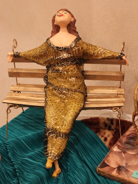«Увлечение началось, когда я забеременела. Это было 4 года назад, когда мне уже было 48 лет. Неожиданно пришло желание творить. Кукол делаю из полимерной глины. Работа кропотливая и долгая. Например, на создание «влюбленного ангела» ушла неделя», - рассказывает Лариса Попова, которая приехала на выставку из Альметьевска. Лариса признается, что пока только дарит свои куклы, но со временем хотела бы их продавать.