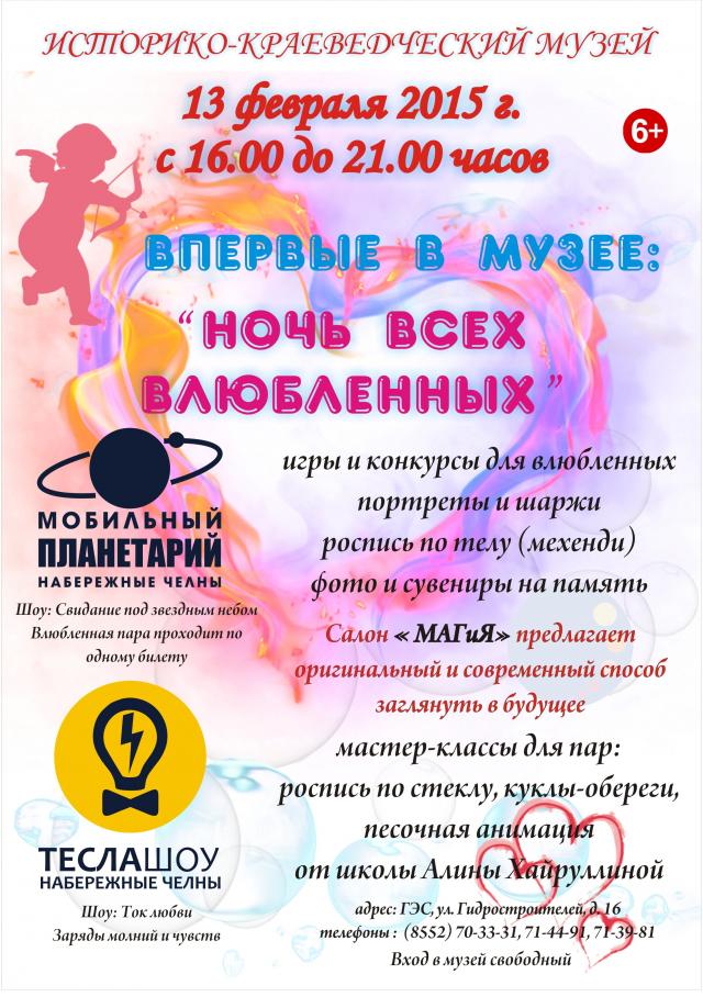Впервые в Набережных Челнах Историко-краеведческий музей проводит «Ночь всех влюбленных» для всех возрастов 13 февраля 2015 года.
