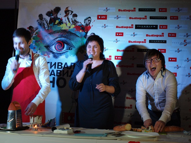 «Неправильное» открытие фестиваля «Неправильного кино»: лихая готовка бутербродов с рыбой и шоколадом прямо у сцены перед началом фильма.