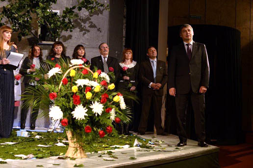 «Сегодня в городе большой праздник – праздник театра. Я искренне поздравляю вас с открытием нового театрального сезона. Надеюсь, что этот спектакль займет достойное место в репертуаре театра. Желаю вам творческих успехов, крепкого здоровья, счастья и семейного благополучия!” – сказал в своем поздравительном слове Ф.Ф. Латыпов.