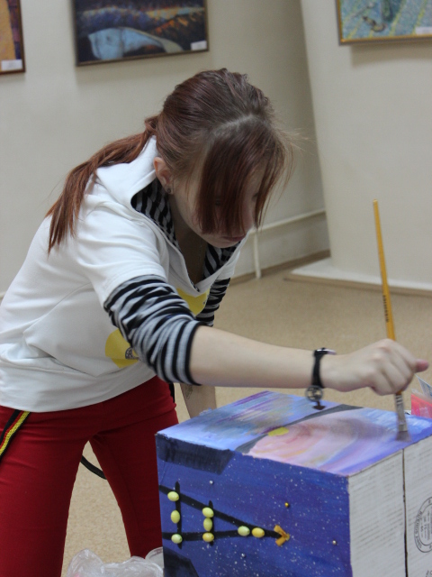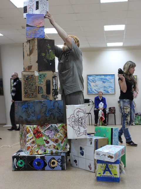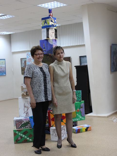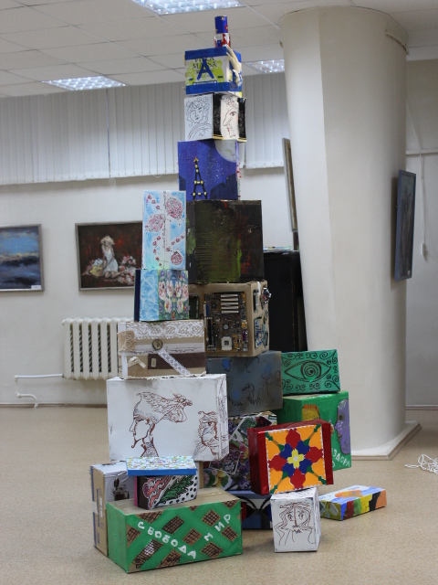 Сегодня в Картинной галерее Набережных Челнов открылась выставка Натальи Бабкиной и Илюсы Хафизовой – «Лестница в небо». Художницы представляют творческую группу «Вдохновение». Перед открытием вернисажа прошел необычный арт-проект. Каждый взял по пустой коробке и что-то изобразил на ней. Затем из этих коробок-ступеней сконструировали подобие лестницы, правда, больше напоминавшей башню из цветных кубиков. В акции участвовали не только художники (Анатолий Пашин, Айгуль Мунирова и другие), но и простые посетители картинной галереи, а также ее работники.