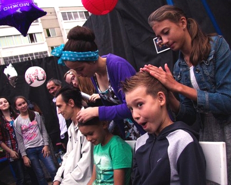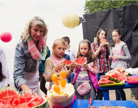 В минувшее воскресенье Добровольческий центр "Волонтер" устроил "Стиляжную" вечеринку для жильцов 39-го комплекса Набережных Челнов. Мероприятие прошло во дворе дома 39/06. Добровольцы в ярких нарядах и с модными прическами вместе с жильцами района отплясывали под рок-н-ролльные ритмы, проводили конкурсы и лакомились арбузами и дынями. Был и еще один повод повеселиться - в этот отмечал день своего рождения координатор ДЦ "Волонтёр" Антон Актуганов: