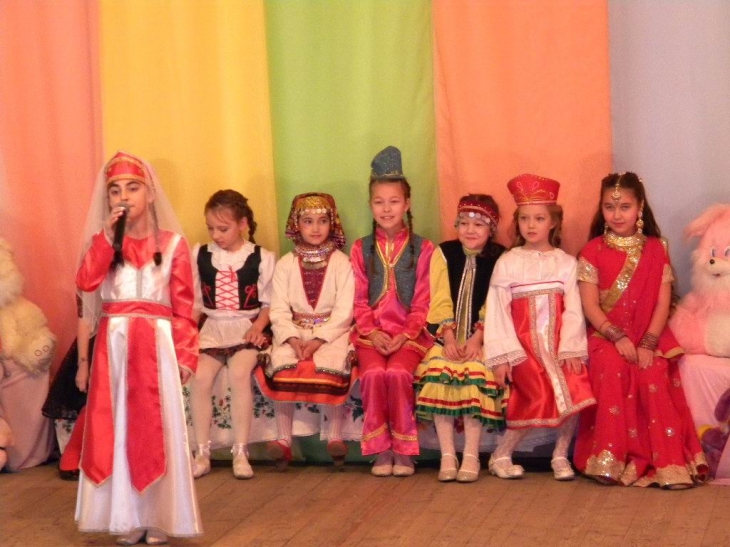 Девочки в ярких национальных костюмах действительно очень напоминали миниатюрных кукол. На родном языке они рассказывали о себе, своей семье и увлечениях. Далее каждая девочка показала народный танец: Анастасия Кириллова, представлявшая немецкую общину, удивила всех «танцем прачки», а музыка хореографического номера Варвары Селезневой из марийской общины заметно оживила зал. Танец Миланы Власовой из индийского культурного центра был воистину зажигательным, а Людмила Вардересян показала женственный и грациозный пляс армянской девушки.