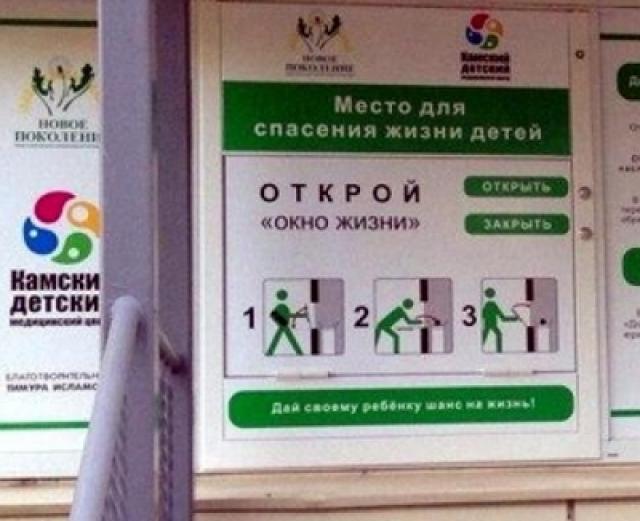 Окно - приемник для новорожденных подкидышей находится при Камском Детском Медицинском Центре. Оно вмонтировано в стену блока Б. В нем контролируется температура воздуха, к боксу подведена вентиляция. О подкидыше медики узнают по спецсигналу, который подается дежурным. В этой части здания не расположено камер видеонаблюдения, чтобы не отпугнуть нерадивых мам.
