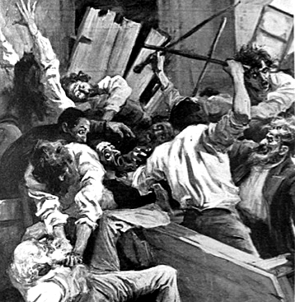 * В 1903 году произошел наиболее массовый еврейский погром в истории России. В ходе беспорядков в столице Бессарабии Кишиневе (ныне столица Молдавии) было убито около 50 человек и искалечено около 600. Кроме того, было повреждено около 1/3 всех домостроений города. Причиной послужило убийство в городке Дубоссары 14-летнего Михаила Рыбаченко. Воглавляемая антисемитом П.А. Крушеваном газета «Бессарабец», основываясь на слухах, акцентировала внимание читателей на возможной еврейской ритуальной подоплеке убийства. Мол, труп мальчика был найден со следами веревок на запястьях, с зашитыми глазами, ушами, ртом и надрезами на венах. Статьи вызвали возмущение жителей Кишенева. Кто-то пустил слух об издании царем секретного указа, разрешавшего грабить и избивать евреев... Как выяснилось позже, подростка убил его родной дядя из-за наследства. На иллюстрации: рисунок из издания "Harper's Weekly" 1903 года, изображающий сцену кишиневского погрома.