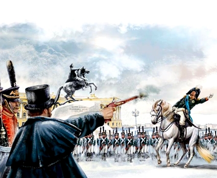 * В 1825 году группа дворян-единомышленников организовала восстание на Сенатской площади Санкт-Петербурга. Все они получили название по месяцу восстания - декабристы. Многие из них были офицерами гвардии и поэтому попытались использовать гвардейские части для недопущения вступления на трон Николая I с целью упразднения самодержавия и отмены крепостного права. Собравшихся на площади обстреляли из пушек. В результате погибло 1271 человек (по данным чиновника С.Н. Корсакова). Оставшихся в живых арестовали. В качестве следователя выступил сам император Николай. Пятерых декабристов приговорили к четвертованию, 31 — к отсечению головы и 17 - к политической смерти. Остальные получили различные сроки каторги. Позже приговор был смягчен для всех, кроме пятерых зачинщиков - смертный приговор остался в силе для Пестеля, Рылеева, Муравьёва-Апостола, Бестужева-Рюмина и Каховского. Однако вместо мучительной казни четвертованием их повесили.
