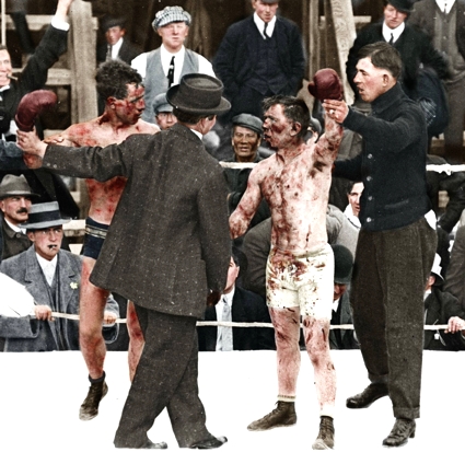 * В 1818 году англичане впервые использовали в поединке боксёрские перчатки. До этогое бокс обладал сомнительной законностью, бои, проходившие в Англии и США, часто прерывались полицией - состязания считались нарушением общественного порядка. Участники поединка использовали борцовскую технику, бои проводились без перчаток и отличались от обычной драки наличием некоторых правил, которые первое время определялись непосредственно перед боем договорённостью самих участников и их представителей.