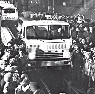 * В 1988 году с конвейера Камского автогиганта сошел миллионный грузовик "КАМАЗ". Событие отметили скромно - торжественным митингом. Однако машина за 12 лет производства морально устарела. С началом "Перестройки" и появлением на российском рынке импортных грузовиков положение автозавода еще более осложнилось - "КАМАЗы" оказались неспособны с ними конкурировать. В итоге иностранные грузовики стали вытеснять "КАМАЗы" в собственной стране. Это заставило завод взяться за создание нового поколения грузовиков, в которых начали применять собственные двигатели с турбонаддувом, а также импортные силовые агрегаты и комплектующие. Также были разработаны более комфортабельные варианты прежних кабин. Главным событием того периода считается внедрение двухосного семейства с колесной формулой 4x2, разработанного под руководством главного конструктора Р.А. Азаматова. Оно было унифицировано с трехосными машинами. В результате, преодолев все трудности, "КАМАЗ", ставший акционерным обществом и пережив пожар на заводе двигателей, в феврале 2012 года выпустил двухмиллионный автомобиль.