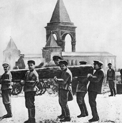 * В 1919 году по инициативе 15 работников депо Москва-Сортировочная Московско-Казанской железной дороги состоялся первый Коммунистический субботник в Советской России. Наибольшего размаха суботники достигли в 1920 году, когда был проведён первый Всероссийский субботник. В нем принял участие и Владимир Ленин, пронеся бревно (на фото крайний справа). Впоследствии этот факт будет активно использоваться в пропаганде.