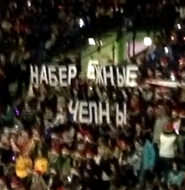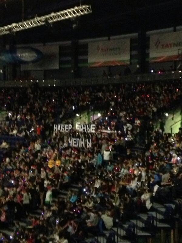 В данный момент в Казани на площадке ледового дворца спорта «Татнефть-Арена» проходит Республиканская новогодняя елка, тема которой «Мечты сбываются в Татарстане». В качестве зрителей на представление были приглашены 7000 учащихся 7-11 классов со всей республики: лидеры общественной школьной жизни, отличники учебы, победители фестивалей и спортивных соревнований, дети-сироты и воспитанники детских домов. Набережные Челны представлены 330 учащимися, которые, находясь на трибуне, дали о себе знать вот таким образом: