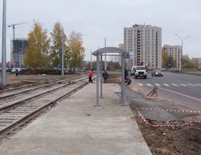 На новой трамвайной ветке в Набережных Челнах ставят остановочные павильоны