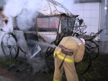 Неизвестный поджег декоративную карету, которая никем не охранялась. В результате она полностью выгорела, огонь был потушен в 4:07. При пожаре никто не пострадал. Внутри кареты была обнаружена бутылочка с бензином. Ущерб подсчитывается.