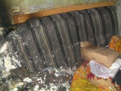 Вчера в десять часов вечера в одной из квартир поселка Сидоровка в результате неосторожного обращения с огнем произошел пожар. В результате сгорел диван, один человек получил ожоги. Погибших нет. Фото с места происшествия.