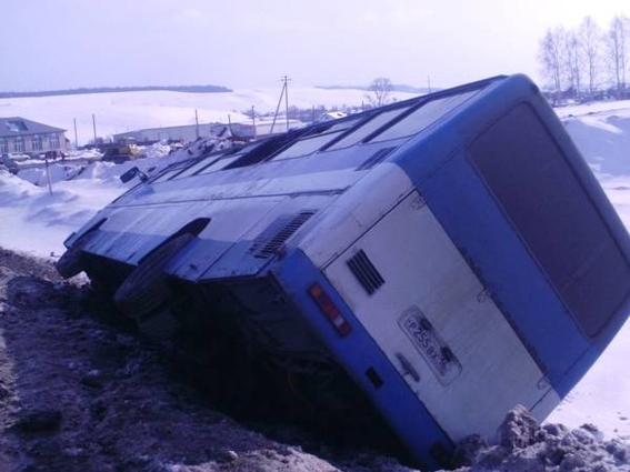 Сегодня на 948-м километре трассы М-7 автобус "Мерседес", в котором находились 28 человек (из них - 25 детей в возрасте 10-11 лет) съехал в кювет, наклонился на правый бок и застрял в снегу. По предварительной информации, причиной ДТП стало то, что водитель автобуса не справился с управлением, сообщает пресс-служба МЧС по РТ.