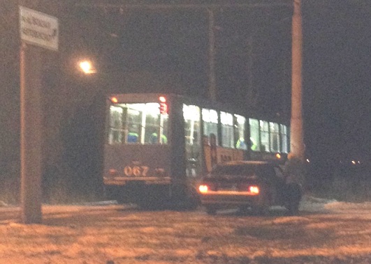 Автомобиль ВАЗ-2114 въехал в трамвай