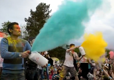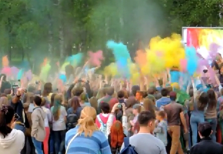 В минувшие выходные в экстрим-парке "Гренада" прошел широко отмечающийся во всем мире Фестиваль красок. Праздник красок Холи пришел к нам из Индии - там разноцветием отмечают приход весны. Индийскую атмосферу в Набережных Челнах поддержала группа "Кайлаш". Организаторы изначально предупреждали публику, что явиться на мерприятие желательно в одежде, которую не жалко будет испачкать. Ведь сухая краска, хоть и отстирывается, но с трудом. Краску продавали здесь же - 150 рублей за пакетик.
