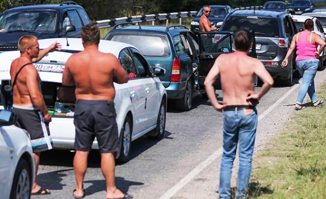Еще обращаем внимание на дициплину водителей. Мало того, что три полосы переходят в одну, и весь транспорт выстраивается в одну линию, так еще те, кто хочет проехать быстрее, вклиниваются в нее справа и слева. Возникают аварийные ситуации. Только за минувшую субботу в этой пробке было зарегистрировано 25 ДТП - друг друга поцарапали, встали. Там специально дежурит экипаж ДПС. Три инспектора только и успевали оформлять их.