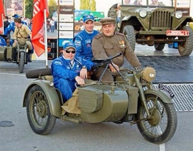 Вчера в Волгограде состоялось торжественное представление участников ралли-рейда "Великая степь-Дон", в котором примут участие три экипажа команды "КАМАЗ-мастер". Праздничное мероприятие предварил торжественный выезд ветеранов Великой Отечественной войны на раритетной авто- и мототехнике. Поcле них место в колясках мотоциrлов, оснащенных пулеметами, с удовольствием заняли гонщики из Набережных Челнов и устроили веселую фотосессию:
