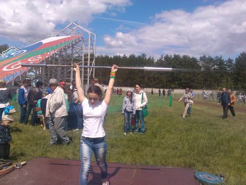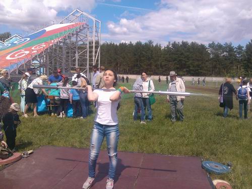 Еще одним сюпризом Сабантуя можно считать школьницу Камиллу Мазитову. Ей 13 лет. На Сабантуй она пришла посоревноваться в поднятии штанги!