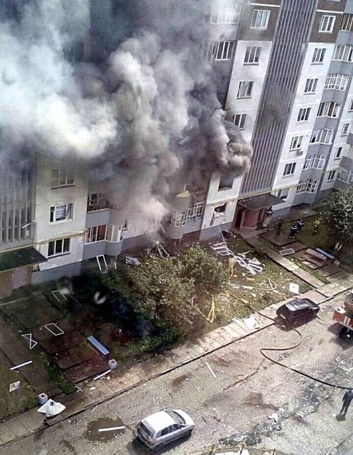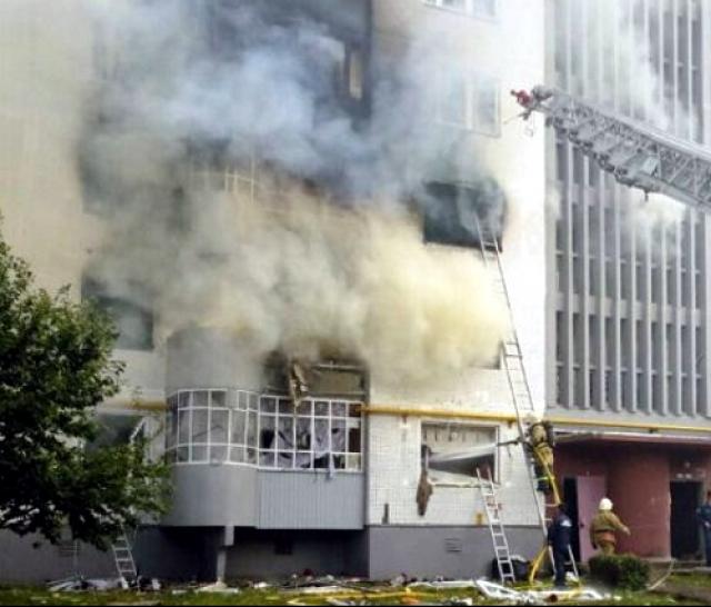 Сразу же после взрыва на втором этаже дома 53/28 вспыхнуло пламя, которое по балконам распространилось на три квартиры. Пожару была присвоена третья категория сложности. Из дома было эвакуировано 104 человека. Шестерых спасли из зоны сильного задымления с верхних этажей - огнеборцы газодымозащитной службы передали им вторые спасательные маски от дыхательных аппаратов. Одну девочку-инвалида, которая не могла самостоятельно передвигаться, пожарные вынесли из дома на руках, предварительно надев ей дыхательную маску. Еще семерых жильцов эвакуировали по пожарной автолестнице.