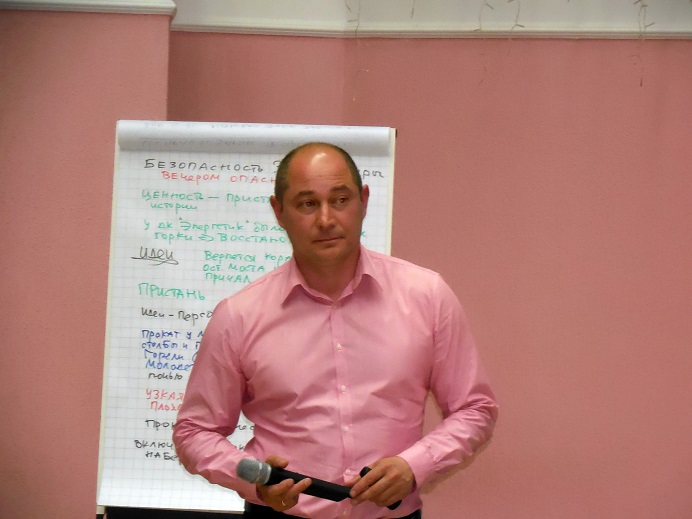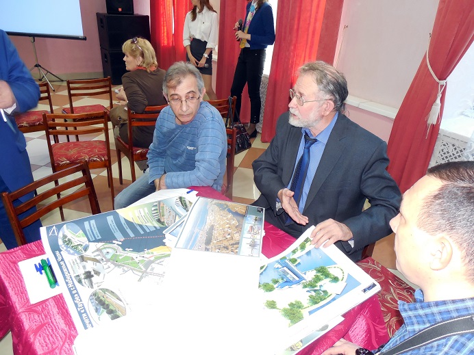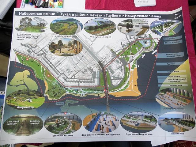 Приглашенным предложили сесть за столы, на которых были плакат с планом благоустройства набережной, фломастеры, чтобы они группами могли оформить свои предложения. За одним из столов расположился проектировщик Ильдус Камалов, который разложил альбомы с разработанной им "Концепцией целевой инженерной защиты города Набережные Челны от негативного воздействия водохранилища Нижнекамской ГЭС».